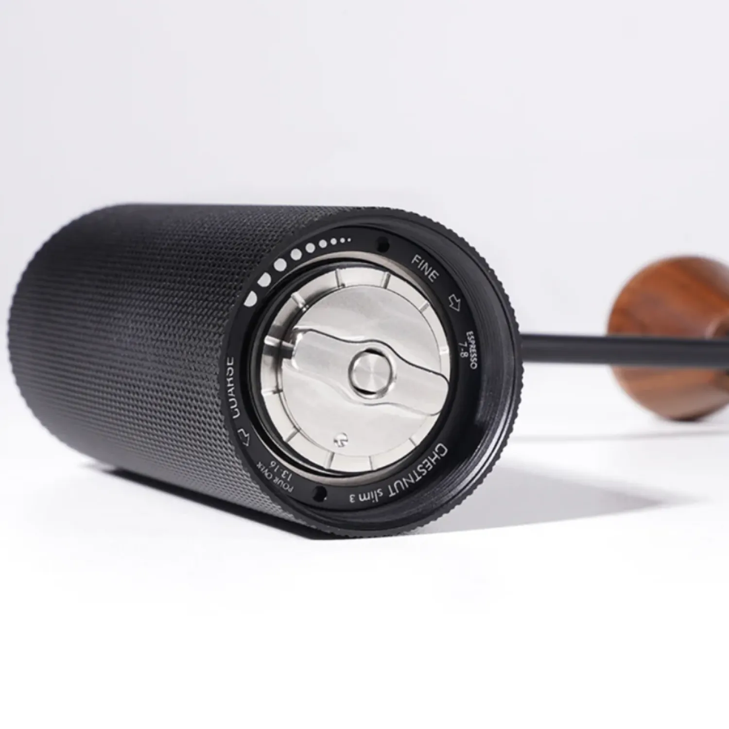 Building on the brilliant design of the popular Timemore Nano hand coffee grinder, the new Slim is a little bigger so you can grind more coffee! The Slim uses the same sharp steel burrs, the same spring mechanism that locks the inner burr into position, and two ball bearings that hold the grinding shaft in place. The result is an exceptionally precise grind and a smooth turning handle. The Slim comes with a traditional style handle, but it’s the little touches like the magnetic handle knob that show just how well this grinder has been designed.